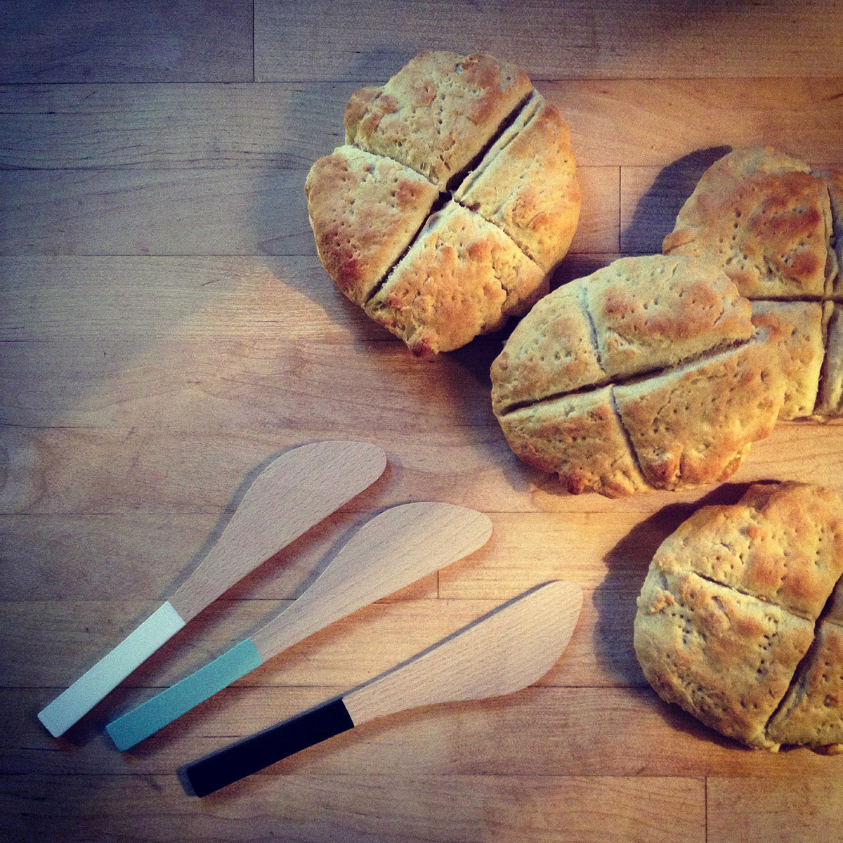For those who can’t start the day without buttered toast: This butter knife is made from beech wood and available with a black handle.